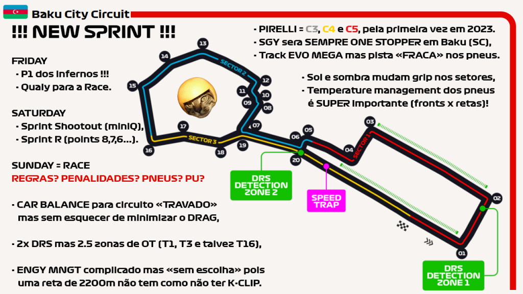 O que vai ser interessante (ou chato) de acompanhar, serão as penalidades, regras esportivas e etc. Tem penalidades de sexta que serão aplicadas no domingo; penalidades de sábado que serão aplicada no próprio sábado e outras no domingo … temos o risco de ver uma confusão total, tipo Monza 2022.