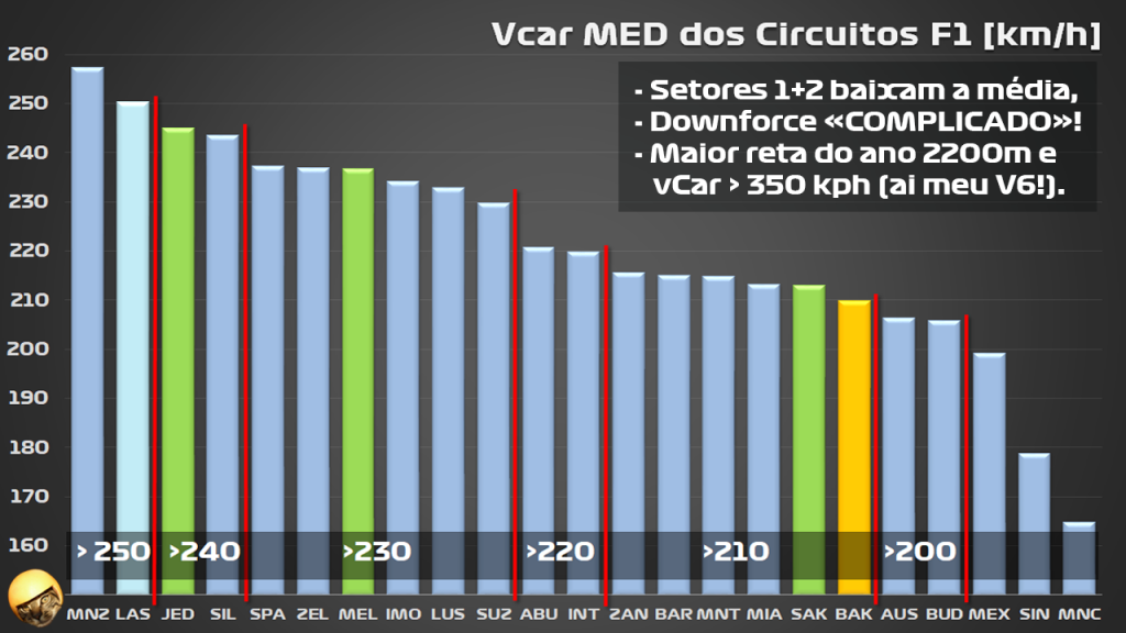 As velocidades máximas são dignas de Monza e México, mas os primeiros setores são tão lentos, que a média cai quase abaixo dos 210 kph.
