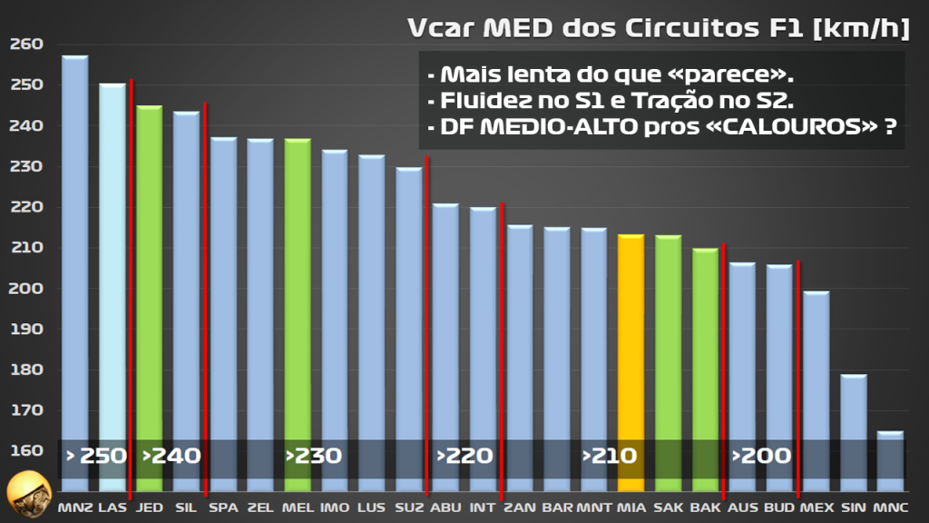O traçado é mais travado do que parece na imagem e ter uma carro bem equilibrado é crucial. O nível de Downforce vai depender muito da confiança que cada piloto vai ter no seu carro.